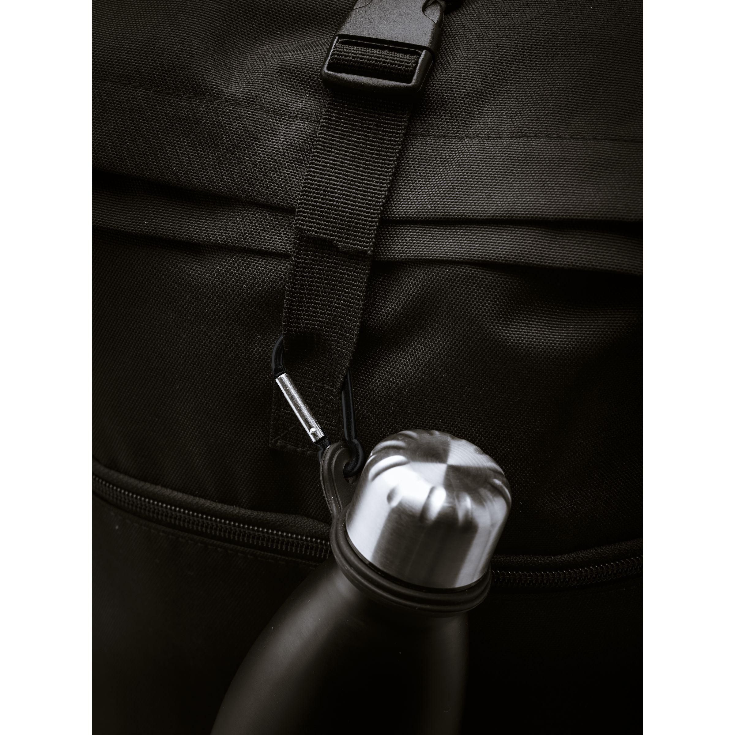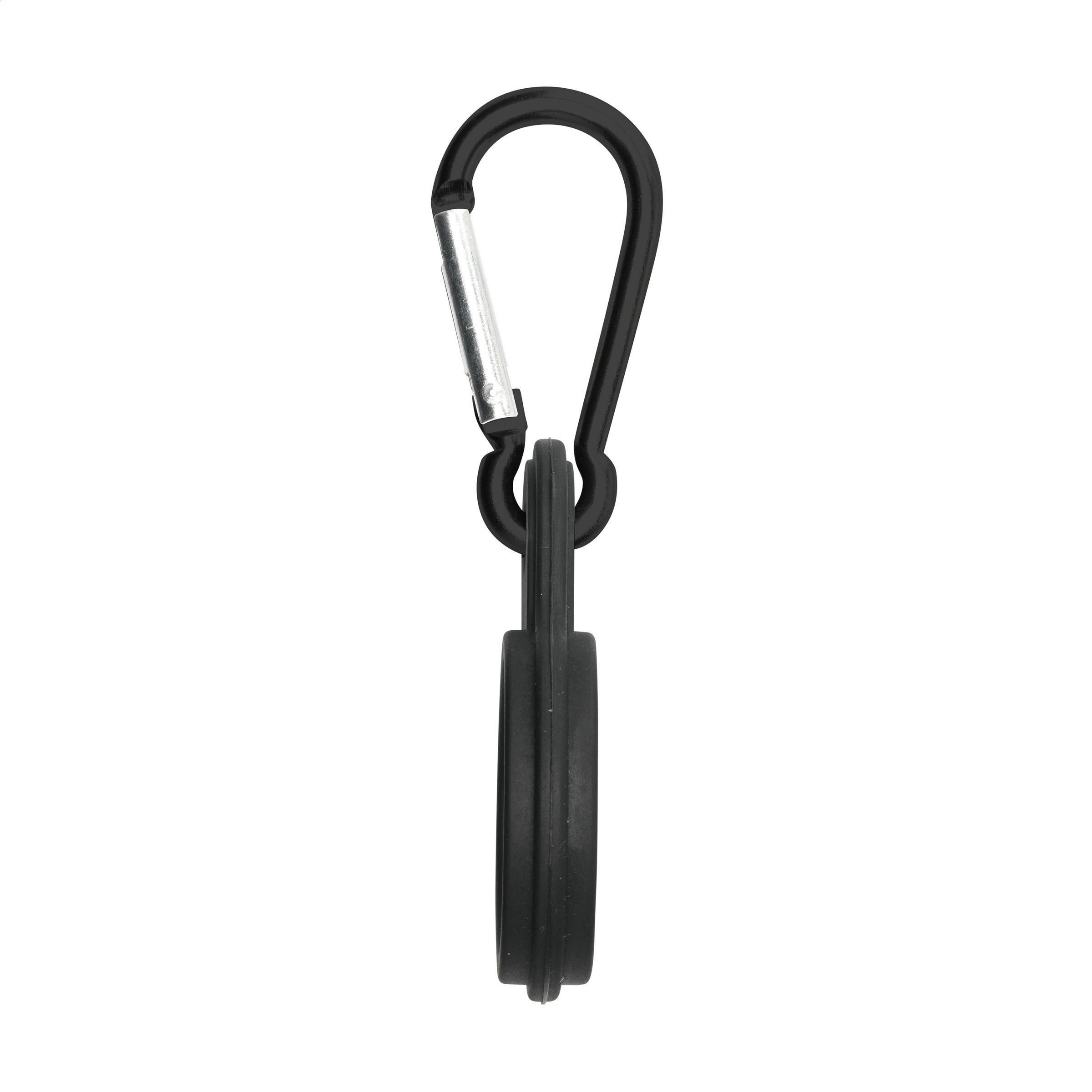 Silikonschlaufe mit Karabinerhaken. Bringen Sie die flexible Schlaufe an Ihrer Wasserflasche an und befestigen Sie sie mithilfe des Karabiners an einem Rucksack oder einer Sporttasche.