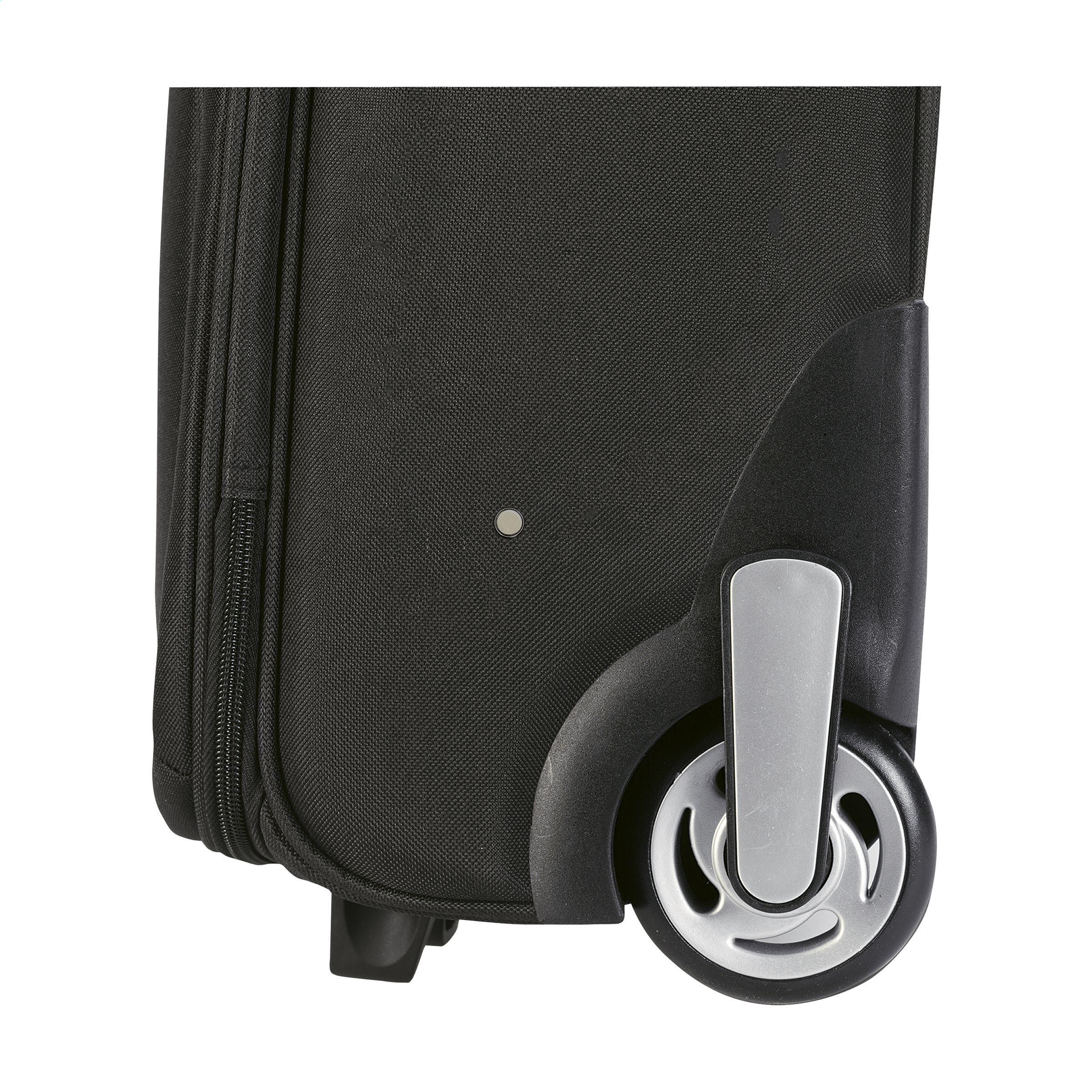 Trolley aus 1000D Polyester mit großem Hauptfach, doppeltem Reißverschluss, verschiedenen Einsteckfächern, 2 Rollen und Teleskopgriff aus Aluminium. Fassungsvermögen ca. 22 Liter.