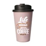 WoW! Doppelwandiger Kaffeebecher-to-go aus 100% recycelbarem Biokunststoff. Hält heiße oder kühle Getränke auf Temperatur. Dieser Becher hat einen Deckel mit Schraubverschluss mit einer Trinköffnung mit einem integriertem Verschluss um versehentliches Auslaufen zu verhindern. Passt in den Standard-Trinkbehälter von Autos, was praktisch für unterwegs ist. Geeignet für Lebensmittel, geruchs- und geschmacksneutral. Spülmaschinengeeignet. Um den Aufdruck zu erhalten, wird Waschen von Hand empfohlen. Fassungsvermögen 350 ml. Hergestellt in Deutschland.