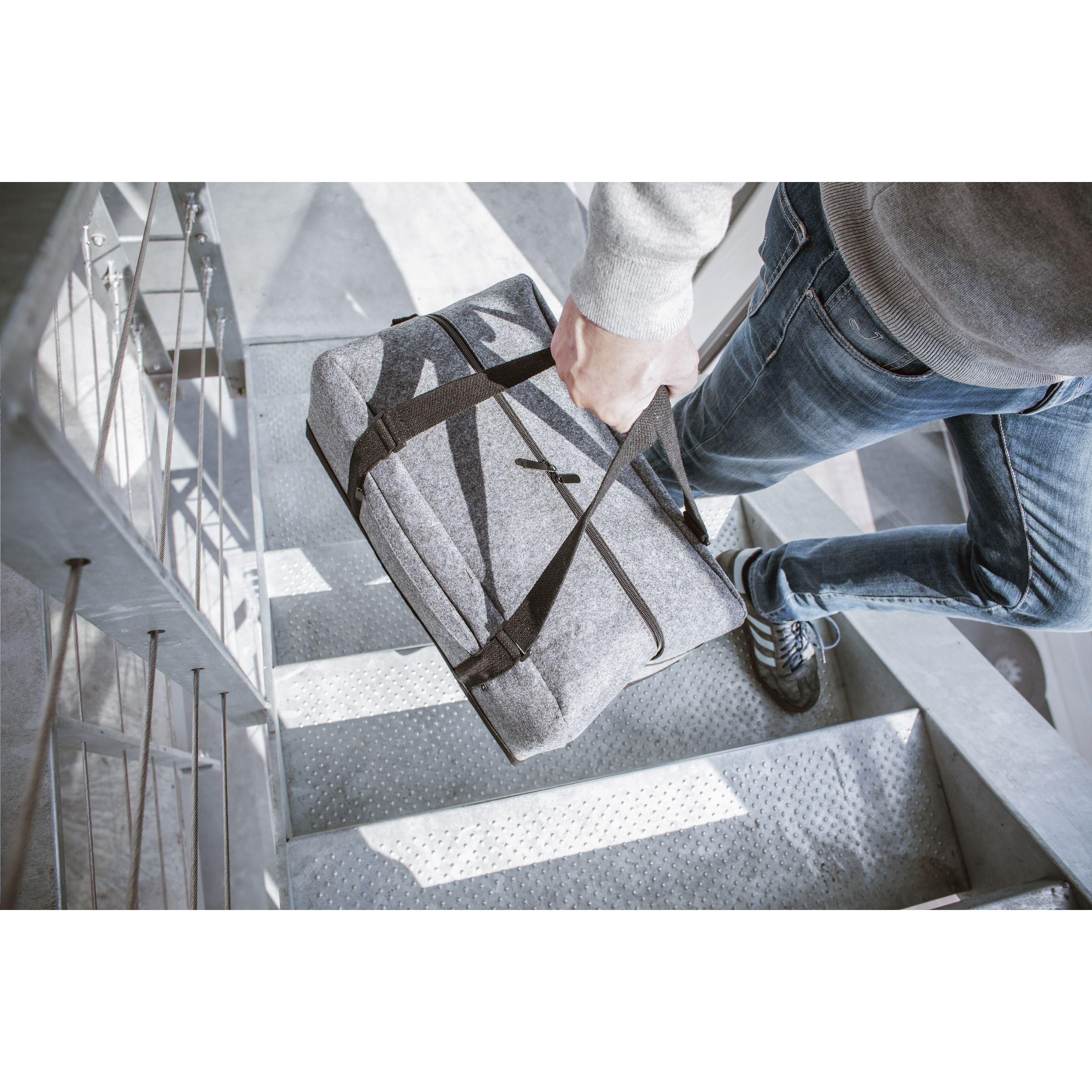Praktische Wochenend-Reisetasche aus RPET-Filz (hergestellt aus recycelten PET-Flaschen) im coolen und attraktiven Design. Diese geräumige Wochenend-Tasche bieten viel Platz zum Verstauen Ihrer Habseligkeiten. Ausgestattet mit zwei robusten Griffen und einem verstellbaren Schultergurt. Die Tasche ist erstklassig verarbeitet und besteht aus Materialien, die eine lange Lebensdauer garantieren. GRS-zertifiziert. Recyceltes Material insgesamt: 70%. Fassungsvermögen ca. 33 Liter.