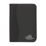 Schreibmappe/Dokumentenmapp aus 600D Polyester/Lederimitat im DIN A4-Format. Mit geräumigen Einsteckfächern, extra Einsteckfach an der Rückseite und Rundum-Reißverschluss. Inkl. Schreibblock und Kugelschreiber.