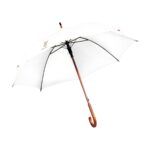 WoW! Regenschirm mit automatischer Teleskopöffnung, 190T RPET Pongee-Bespannung, Metallgestell, Holzschaft und -griff sowie einem Klettverschluss. RCS-zertifiziert. Recyceltes Material insgesamt: 15%