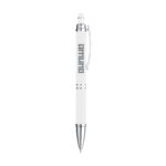 Blauschreibender Aluminium-Kugelschreiber mit Metallclip und gummierter Spitze für das Bedienen von Touchscreens (wie iPhone/iPad). Der Halter ist mit einer schönen gummierte Soft-Touch-Oberfläche versehen. Auf dem Vorderteil ist ein spielerisches Relief angebracht, das für einen festen Griff sorgt. Bei diesem Stift wurde viel Wert auf kleine zusätzliche Details gelegt. Das macht sein Design auffallend attraktiv.