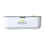 Luxuriöse Lunchbox aus hochwertigem Kunststoffmaterial. Der Deckel hat einen Silikon-Dichtungsring, eine Lüftungsöffnung und einen zusätzlichen Schnappverschlusses. Mit abnehmbarem Trennwand. Diese Box ist für den Kühlschrank geeignet und kann daher auch als Frischhaltebox verwendet werden. Nicht spülmaschinengeeignet.