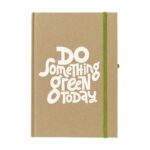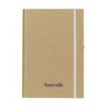 Notizbuch im A5-Format aus recyceltem Material. Mit ca. 80 Blatt/160 Seiten cremefarbenem, liniertem Papier (70 g/m²), praktischem Stiftfach und elastischem Verschluss. Der Einband und das Papier sind FSC Mix zertifiziert.