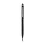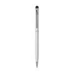 Blauschreibender Metallkugelschreiber mit gummiertem Pointer zum Bedienen von Touchscreens (wie iPhone/iPad), hochglänzenden Akzenten und Dreh-Klicksystem.